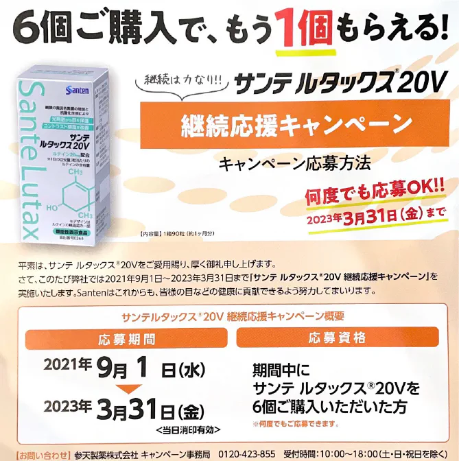 〈サンテ ルタックス20V:ルテイン20mg配合〉