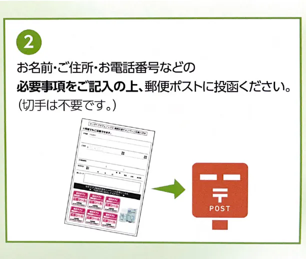 ②必要事項をご記入の上、郵便ポストに投函。