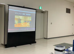 実際に見えにくい方の生活の工夫の様子や、サウンドテーブルテニスなどをしている様子などが上映されていて、見ている方も何かヒントを見つけている様子も伺えました。