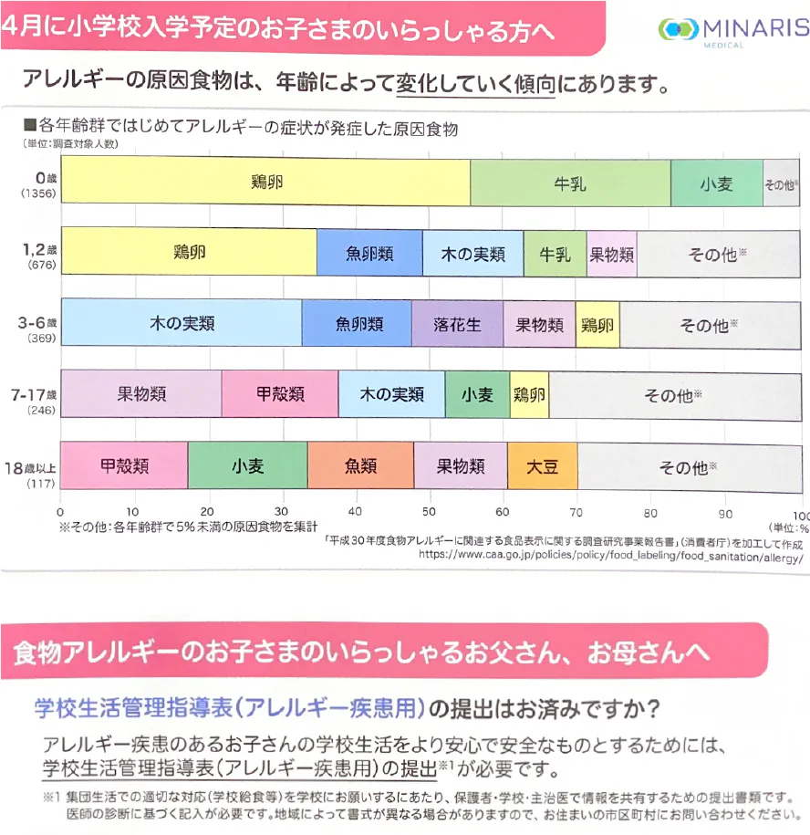 アレルギー疾患により学校生活の中で特別な配慮が必要な児童生徒は、“学校生活管理指導表(アレルギー疾患用)の提出が必要となります。かかりつけの小児科などへご相談ください。