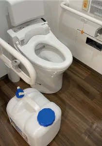 タンク式のトイレではなく、排水ボタンが作動しないために排水ができませんでした。幸い、断水でなかったため、水を準備しました。一定量水を入れると流すことができます。