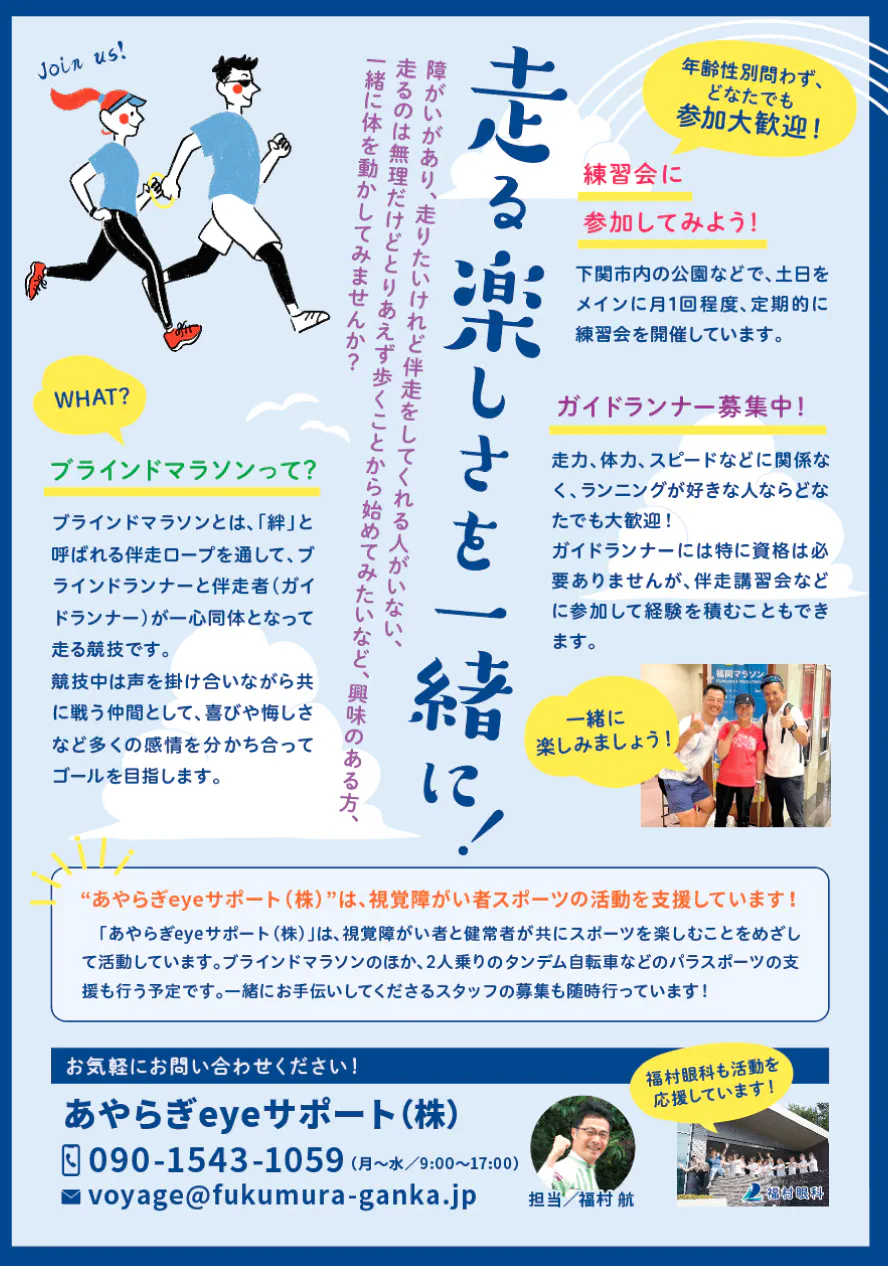 あやらぎeyeサポートよりお知らせ「走る楽しさを一緒に!」