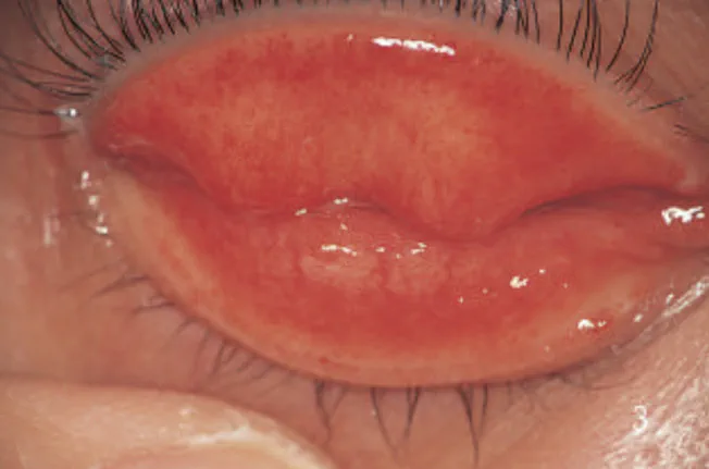 目の充血(強い)目やに(目が開きにくいほど多い)涙目、瞼の腫れ。これらの症状も、まず片方の目のみに発症し、1~2日ほどでもう片方の目にも症状が現れます。そして、耳の前にあるリンパ節が腫れて触ると痛みを伴います。