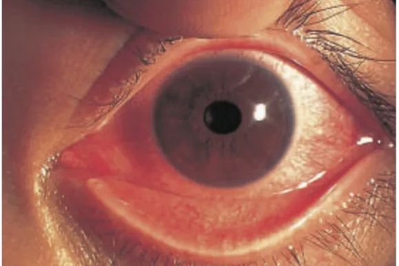 目の表面の血管が拡張することで目が赤く見えます。