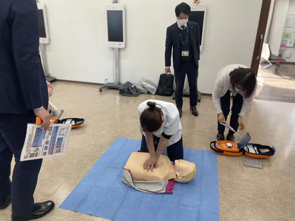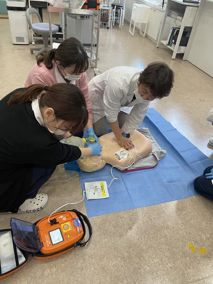 定期的にAEDの使い方を指導してもらい、いざという時に慌てることなくすぐに行動できるように学んでいます。