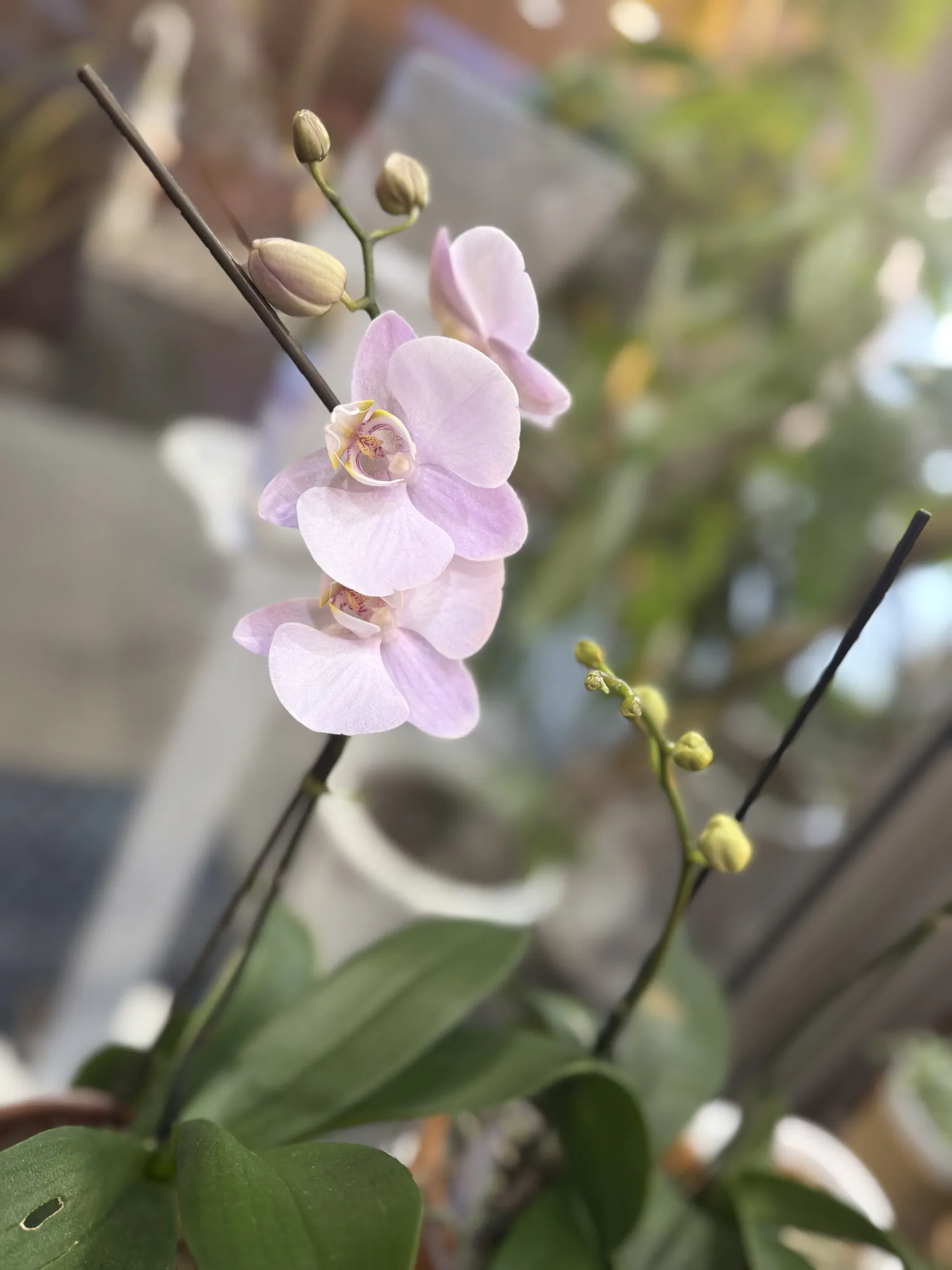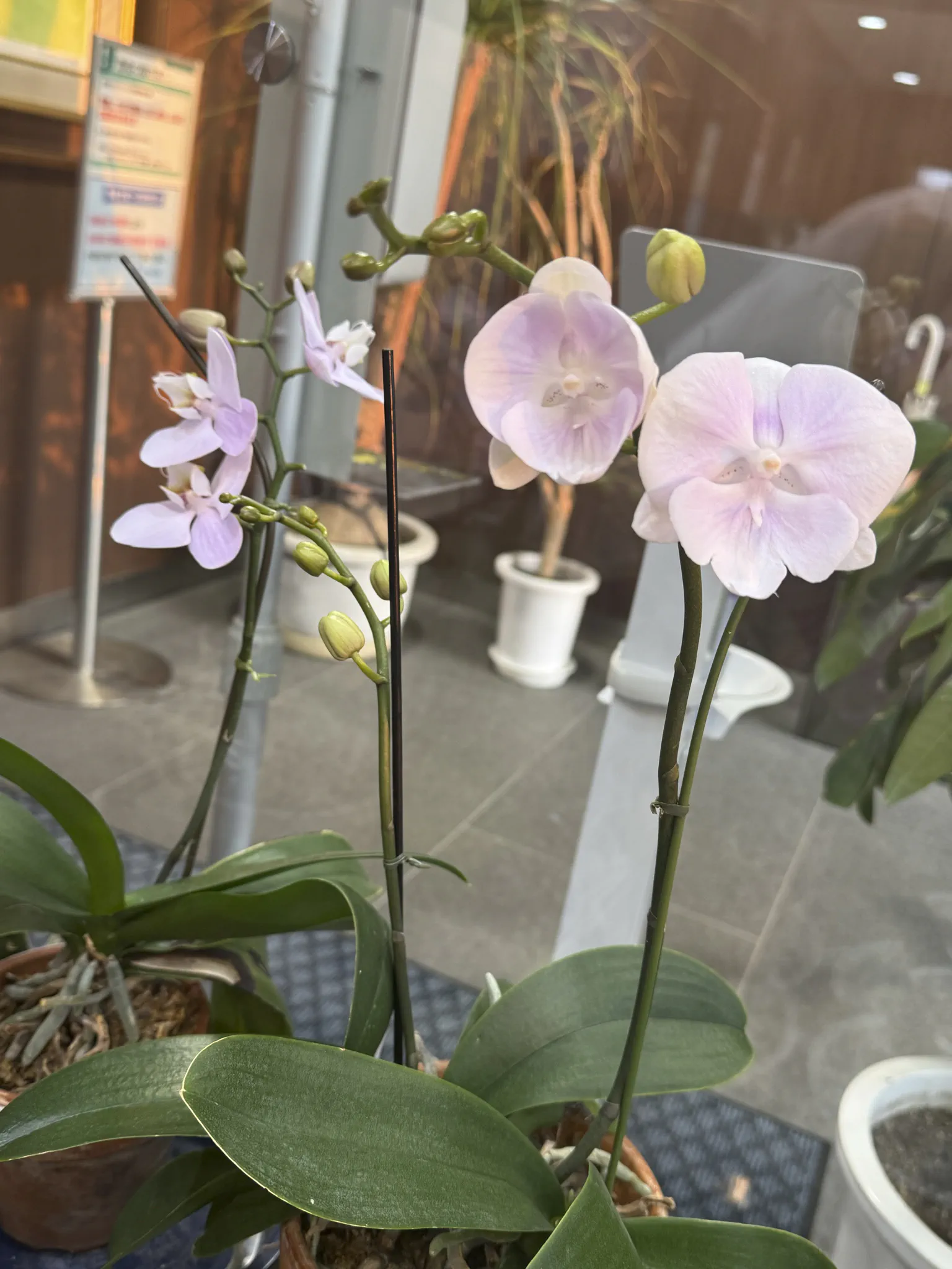 院内のたくさんの胡蝶蘭の中で、こちらも薄いピンク色の胡蝶蘭が咲き始めました。