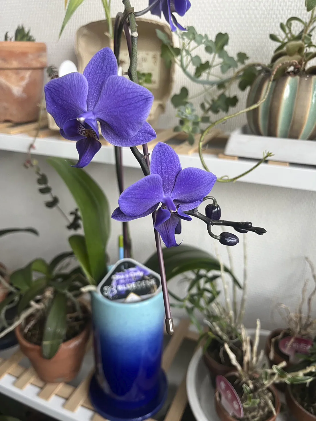 その青い胡蝶蘭を購入することができ、今院長がとても可愛がって育てています。