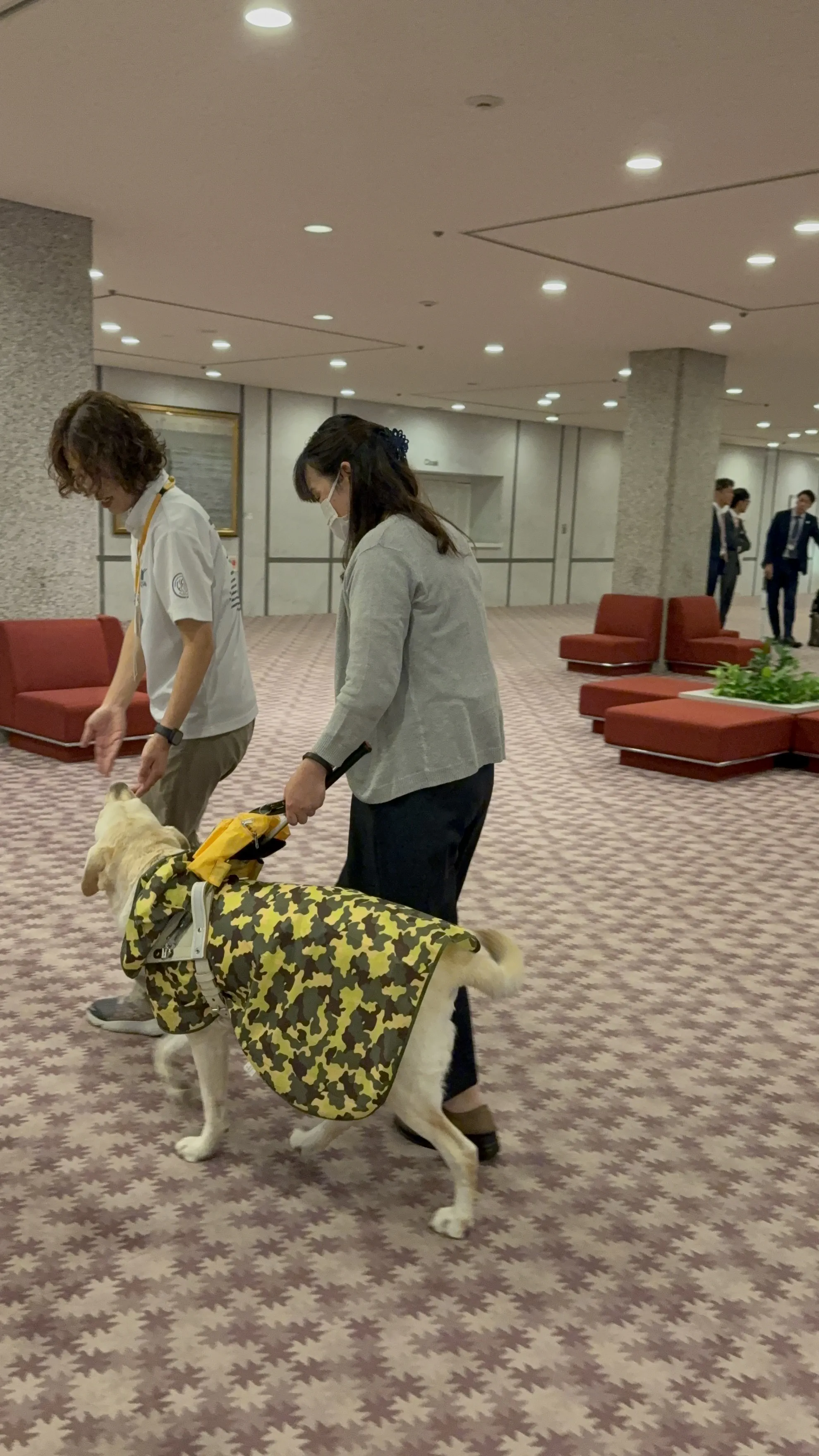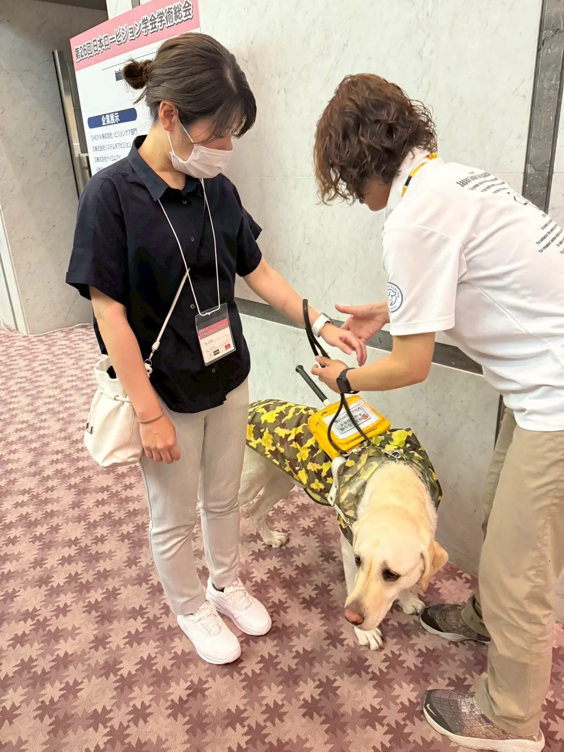 日本盲導犬協会のブースでは実際の盲導犬とふれあい、盲導犬との歩行体験もさせていただきました。