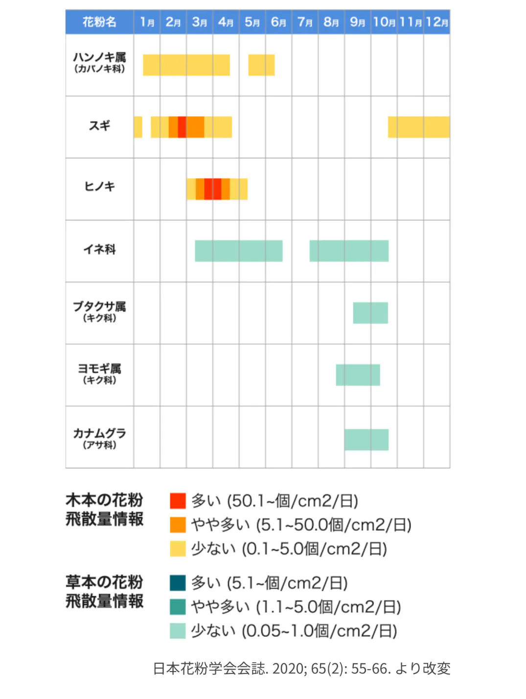 この時期は、黄砂の影響や、ブタクサ・ヨモギなど秋の花粉が地域や気候条件によっては12月まで飛散することもあり、それらが原因と考えられる場合もありますが、スギ花粉の可能性があることには驚きました。