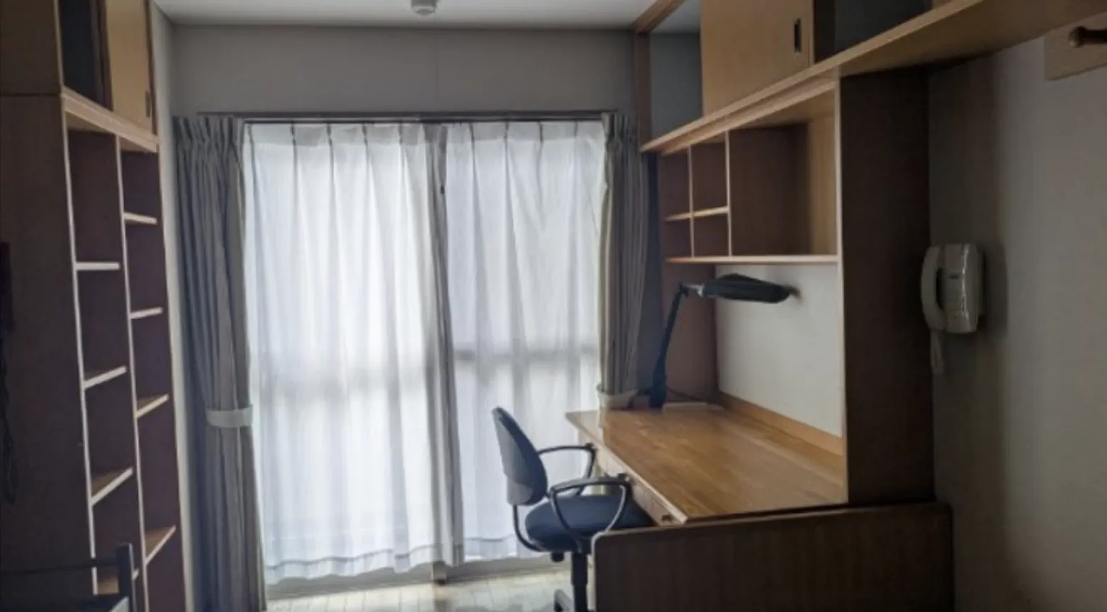 部屋は清潔で広々としており、入寮中に部屋移動があっても混乱しないよう、基本的に同じ造りになっているとのことでした。