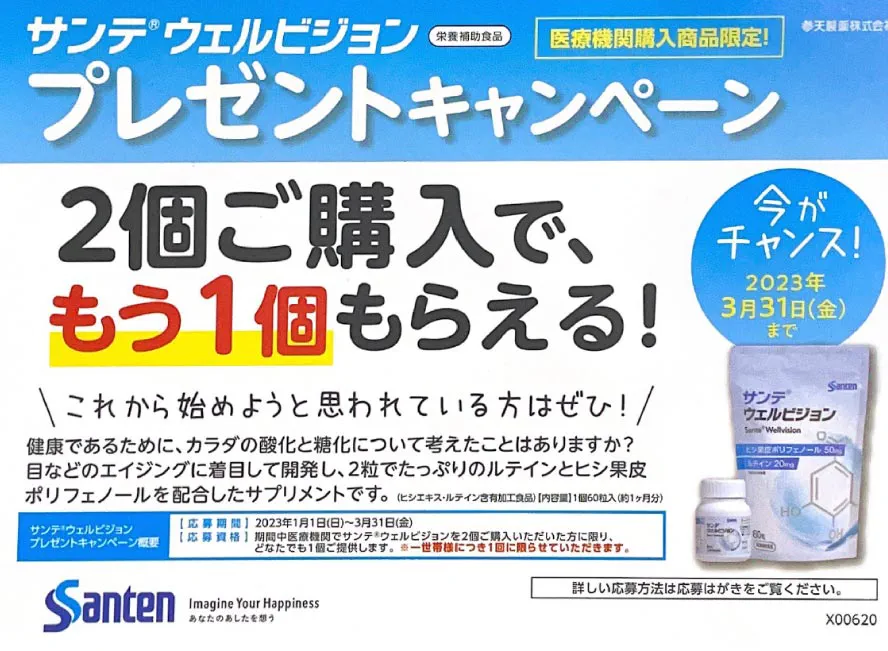 参天製薬の栄養補助食品 サンテ『グラジェノックス』プレゼントキャンペーンのご案内です。