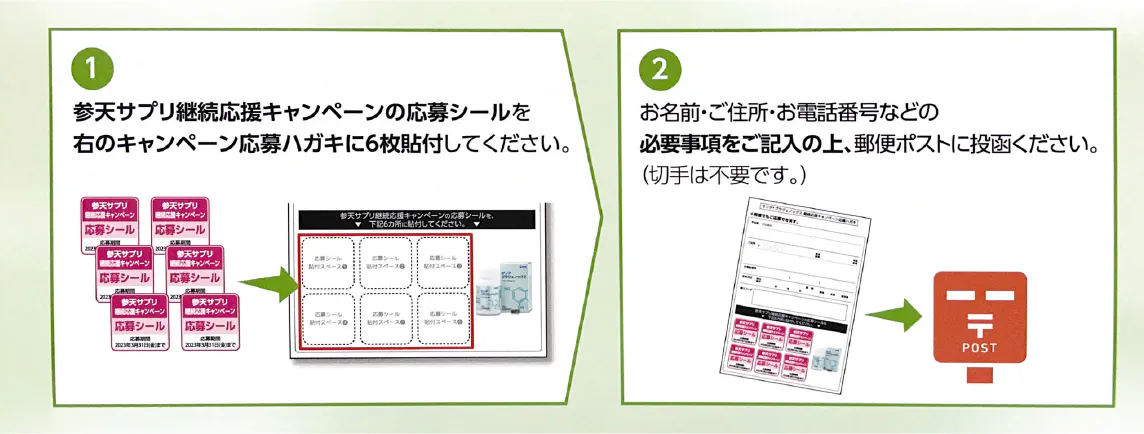 当院にてサプリメントをご購入の際に、キャンペーンのご案内、応募ハガキをお渡ししております。
