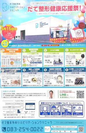 当院ご近所のだて整形外科リハビリテーションクリニックにて楽しく元気になれて、健康に役立つイベントが開催されます♪