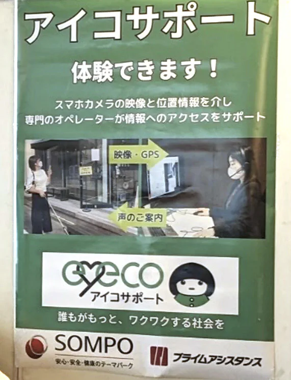 視覚障がいがある方に対して、専用オペレーターがスマホカメラで写した映像や位置情報を遠隔で操作し、道に迷っていても目的地までのルートを教えてくれます。
