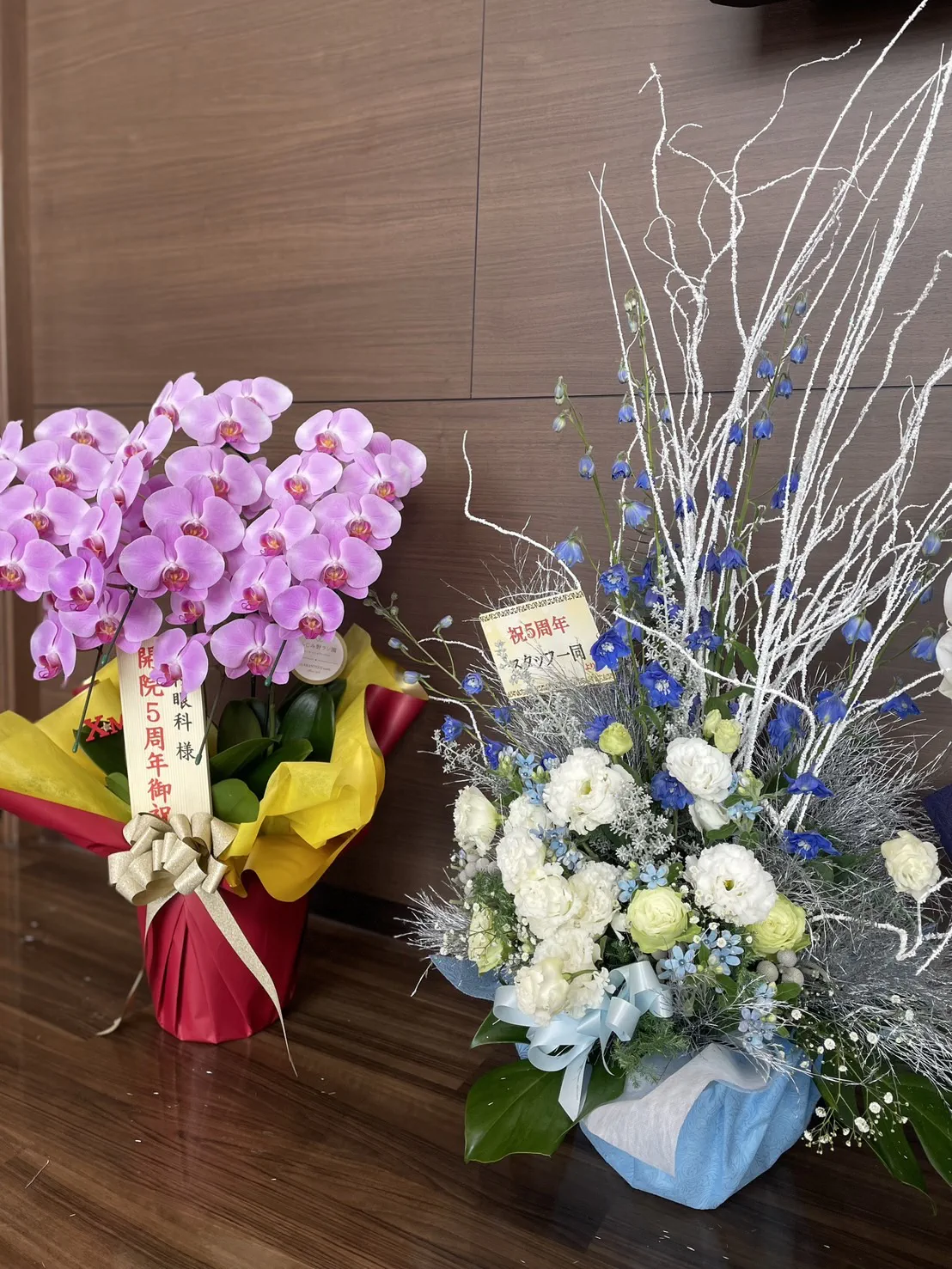 当日は、スタッフ一同より院長に花をプレゼントしました♡福村眼科カラーの青色でアレンジされていてとても可愛い花でした。先生にも喜んでもらえて良かったです。