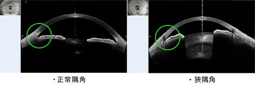 この検査により、狭隅角や閉塞隅角緑内障の診断を明確に行うことができ、『急性緑内障発作』が起こる可能性のある眼を予測することができます。