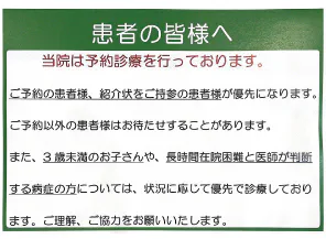 当院では、ご予約の患者様、紹介状をご持参の患者様が優先になります。また、3歳未満のお子さんや、…